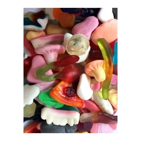 Winegum mix van de duurdere soorten winegum. Muizen, inktvissen, slangen, kersen, winegumletters, colaflesjes, winegum, pizza, cheeseburgers, i eieren, paddestoelen, loveharten, kikkers, met andere woorden. een Top Winegum Mix!